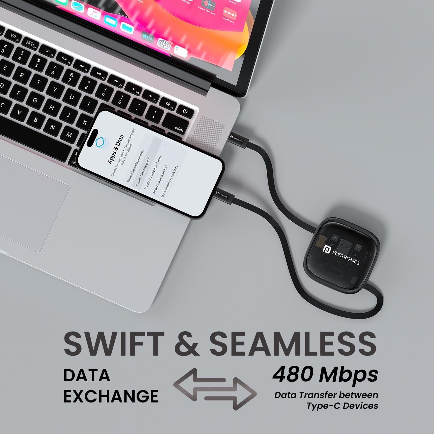 - Multipurpose Cable Card: The case has allocated Type C to Type C Retractable Cable and Type C to Micro/ Lightning Cable. It can also hold a variety of converters and connectors including USB to Type C converter, Lightning to Type C converter and Type C to USB connector. Now the variety of cables and tiny connectors will not be lost if you have a Portronics SnapCase 2.